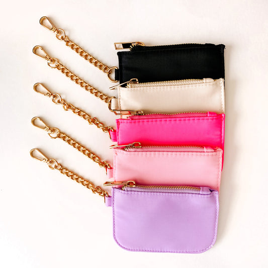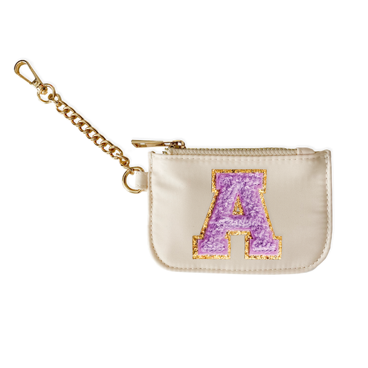 Zipper Pouch Keychain with Monogram Initial - Cream